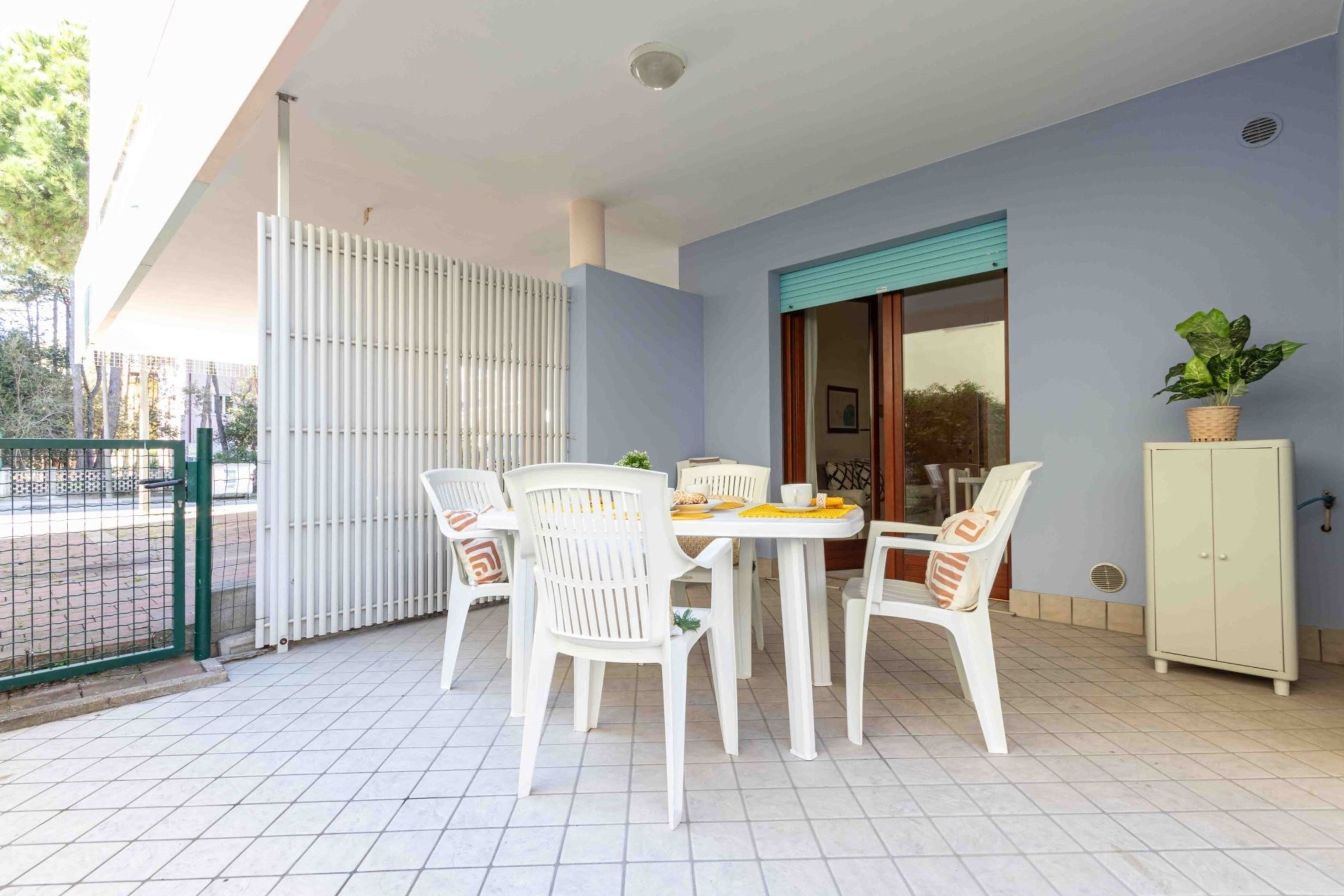 The three-room apartment, with A/C for 4/6 guests, is located on the ground floor and features a fenced garden (no elevator). It consists of a living room with a double sofa bed, TV, kitchenette equipped with a large fridge, one double bedroom, a second bedroom with bunk beds, a safe, a windowed bathroom with shower box and washing machine connection (possibility to rent a washing machine at an extra cost through our agency), WI-FI and one covered parking space per booking. °No pets allowed. °Photos are generic: the accommodation may differ in furniture, decorations and colours.
